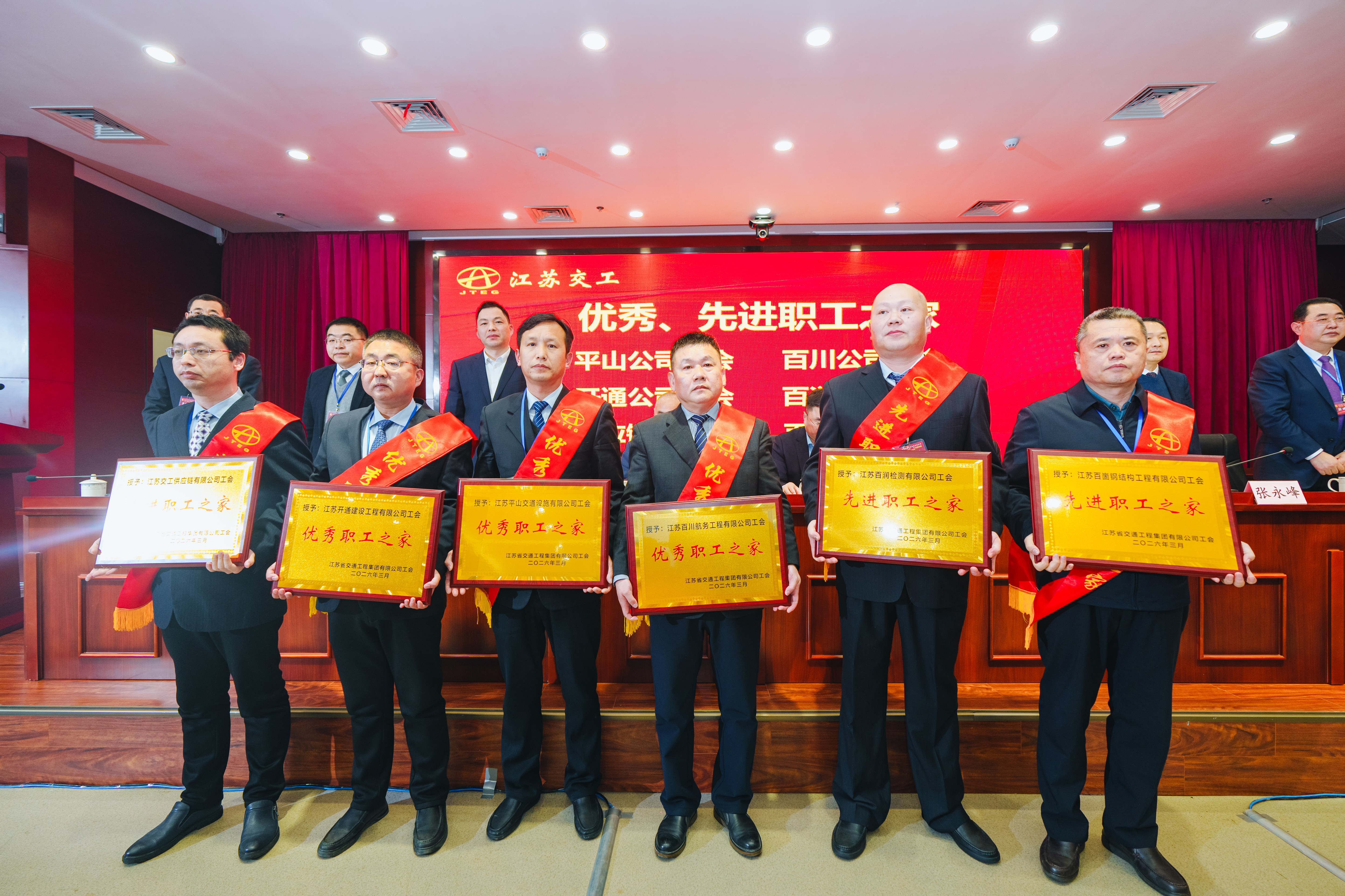 江苏省交通运输工会副主任金建浩,镇江市交通运输局党委委员、副局长顾建武,镇江市总工会三级调研员、镇江职工发展基金会会长薛国平,江苏省建总裁、集团公司董事长蒋宁,江苏省建党委副书记、工会主席李跃清,镇江市总工会基层工作部部长陈玉松,镇江市交通运输工会主任叶艳等领导应邀出席会议。