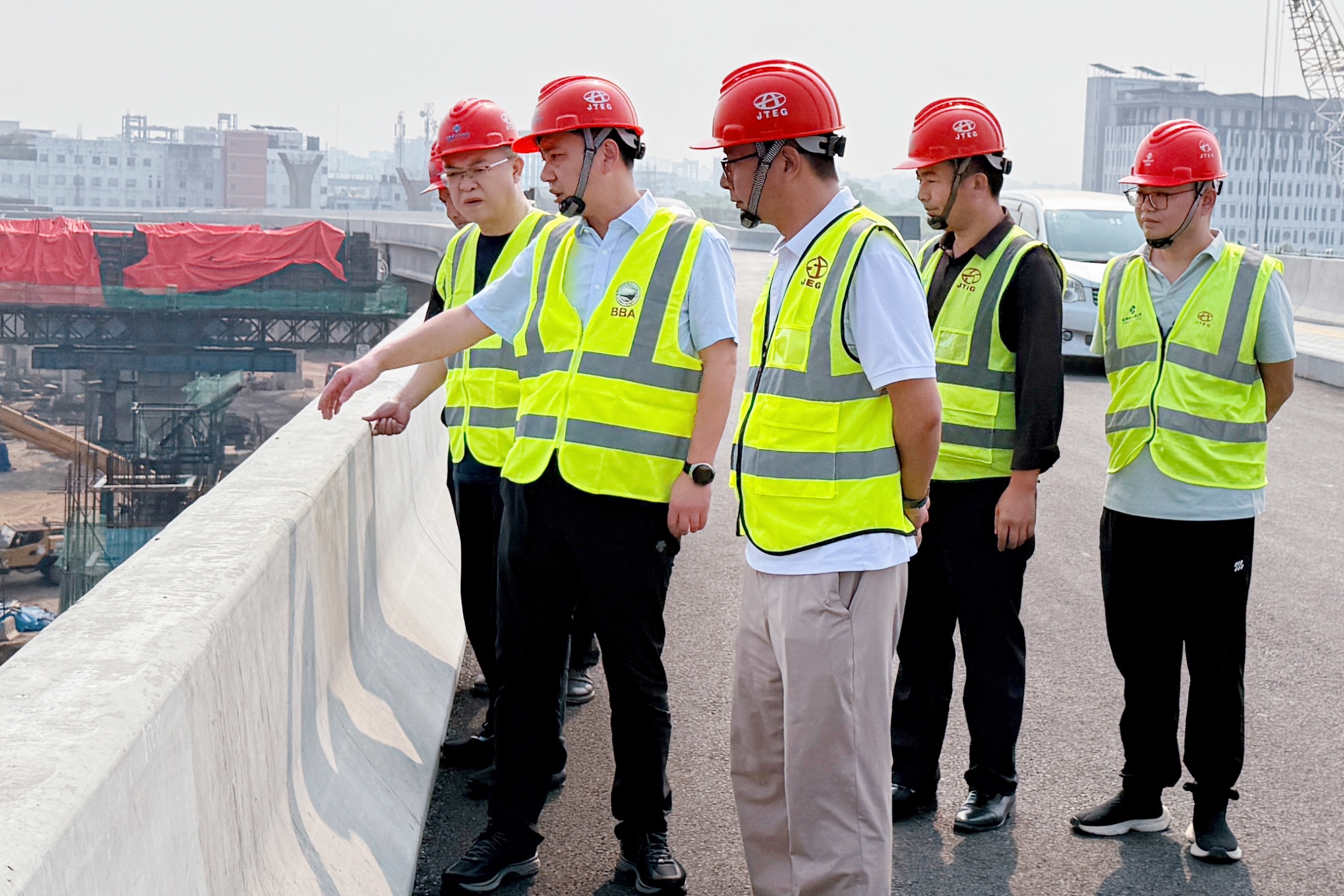 在已完工的BRT项目现场,李玉山总裁率队进行全线考察,对项目团队在复杂环境下高效推进施工、圆满完成建设任务所取得的成绩给予肯定。在达阿高速项目施工一线,李玉山总裁详细了解工程进展情况,重点围绕当前制约施工推进的难点问题进行分析研判,并结合项目实际,从施工组织优化、资源配置协调等方面提出针对性指导意见,为项目下一步顺利推进明确方向。在深入调研项目的同时,李玉山总裁专程走访相关上级单位与合作方,就项目推进过程中涉及的关键问题进行沟通协调,持续深化务实合作,为项目高效建设营造良好外部环境。